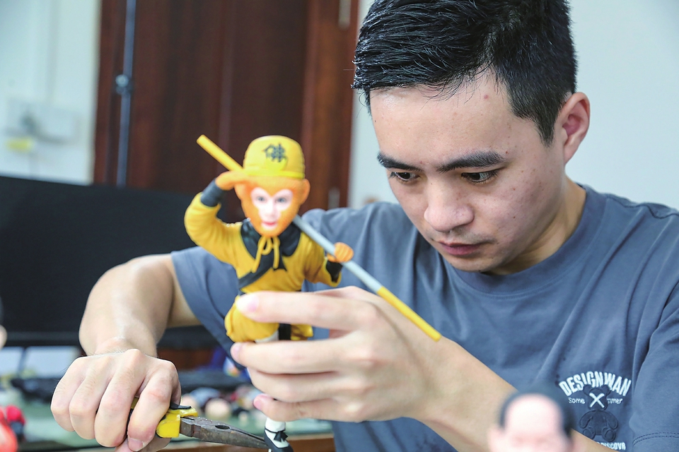 黄仁俊可以用陶泥创作出各种有趣又逼真的人物、动物,孙悟空、魔童哪吒这些影视人物以及中外名人等形象都可以做得生动自然。