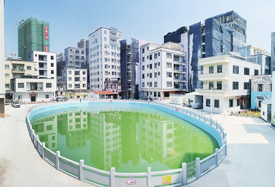 这个水塘位于寨头村深沟仔村,是寨头村实行村规民约、人居环境整治的一个缩影。据介绍,由于村中有水沟和水塘,故名“深沟仔村。”过去,水沟污水横流,水塘垃圾漂浮,水体发黑发臭,村民总是掩鼻匆匆而过。自村规民约实行以来,深沟仔村村貌焕然一新,处处可见“四小园”和彩色墙绘,水沟铺设了排污管,还变成了硬底化的道路,村民出入方便多了。经3年的努力,水塘变成了村中最受欢迎的游玩地,每天都人来人往。