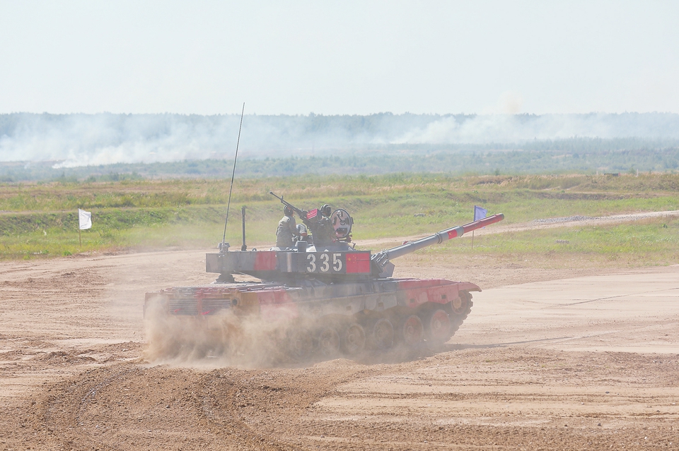 8月24日,在俄罗斯莫斯科州阿拉比诺靶场,中国参赛队96B坦克在比赛中。新华社发(罗坤摄)