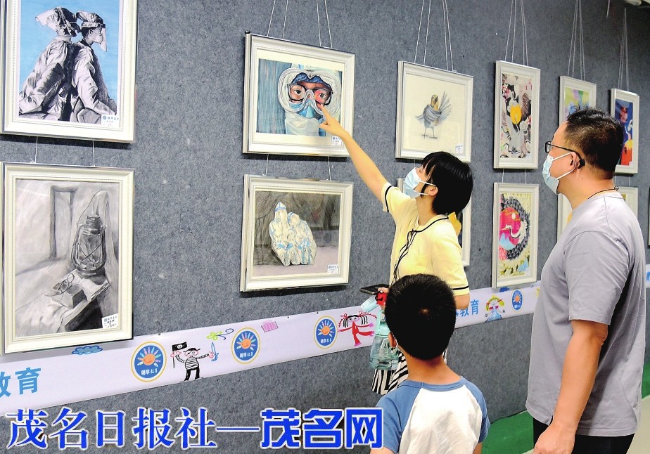 市民观看“喜迎二十大童心绘童书”青少年绘画作品展。 茂名日报社全媒体记者陈国汉摄