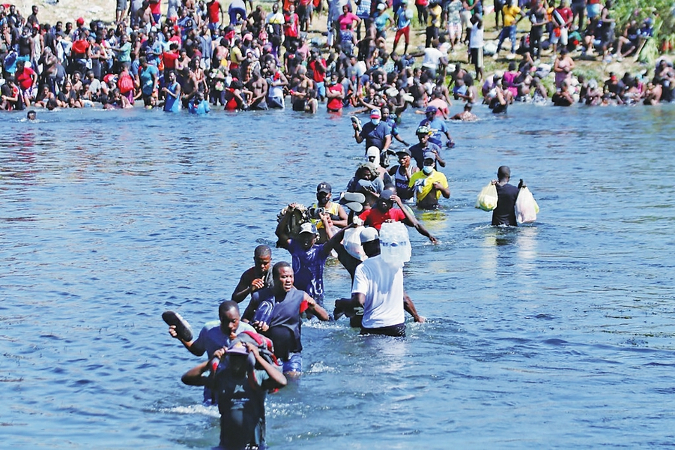 这张2021年9月19日从美墨边境墨西哥科阿韦拉州阿库尼亚城一侧拍摄的照片显示,购买物资的非法移民在里奥格兰德河上往返。 新华社发