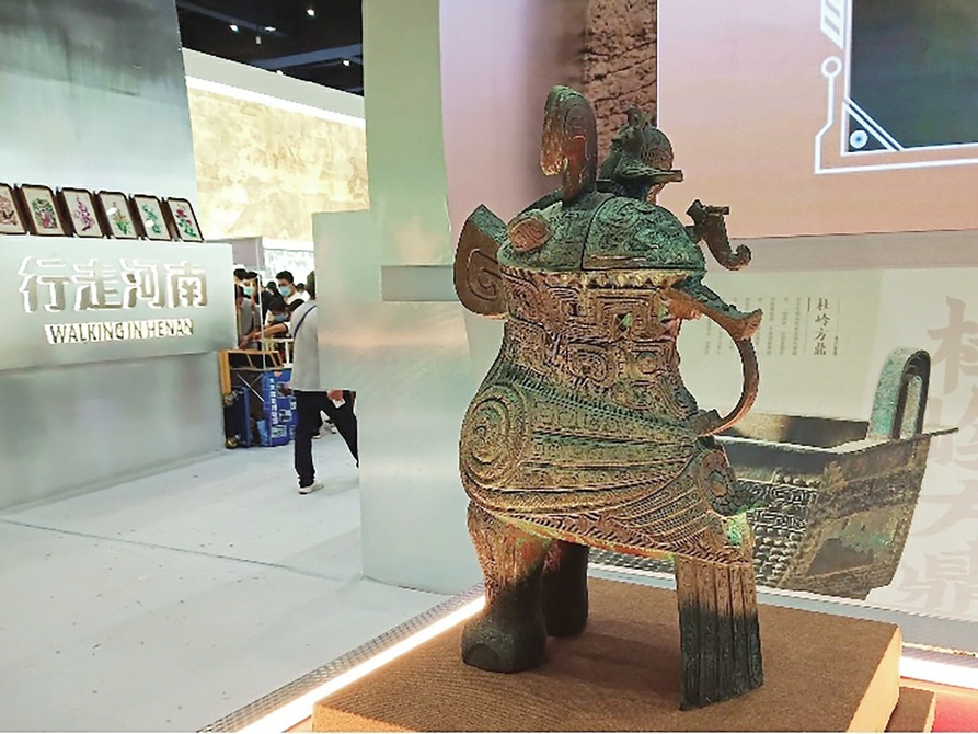 走进第九届“博博会”河南展区,10余件以历史脉络为主线展出的精品文物复制品映入眼帘,站在“C位”的,是出自河南安阳殷墟妇好墓的妇好鸮尊。