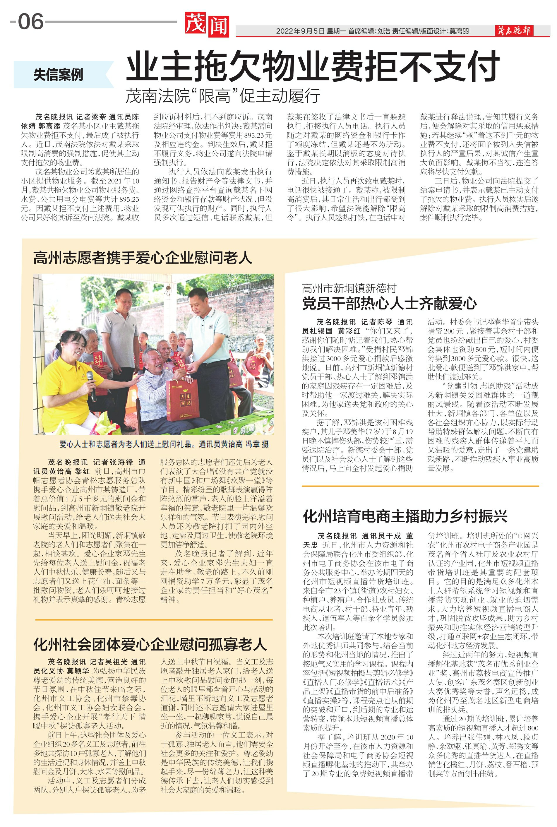化州社会团体爱心企业慰问孤寡老人