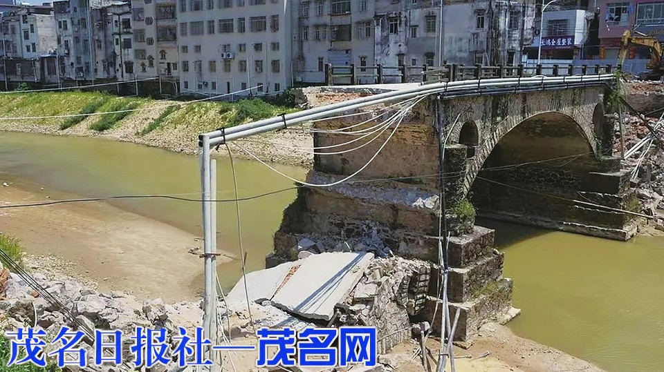 北界桥开始拆除。茂名晚报通讯员陆波摄