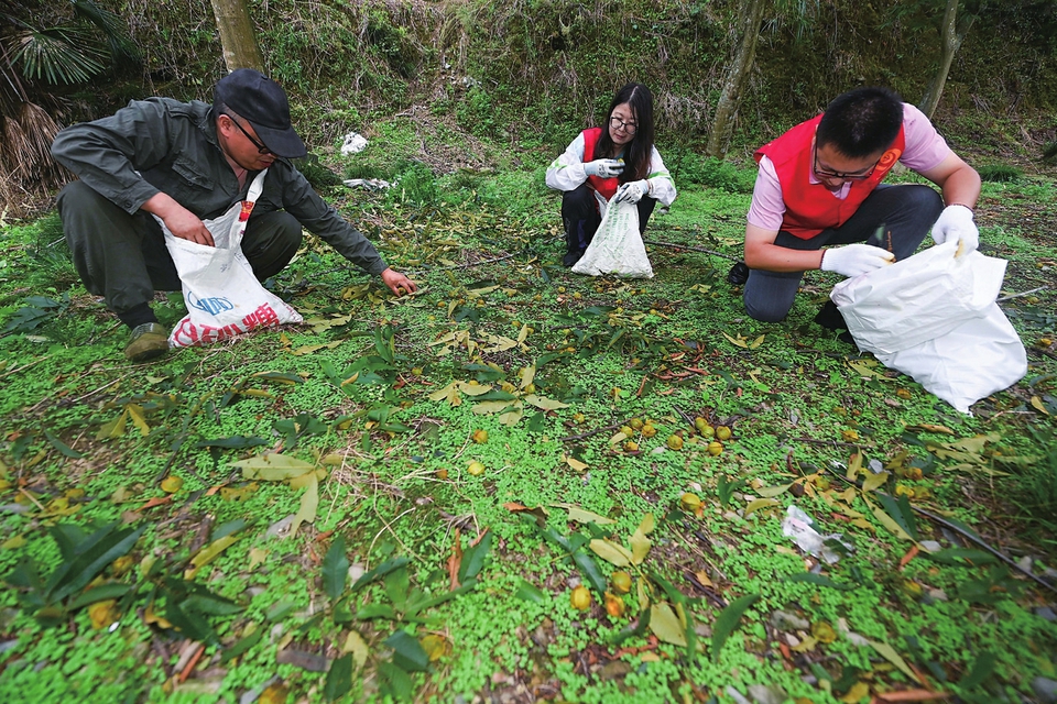 为确保山核桃采收安全有序,临岐镇组织120余名党员成立了“红岐”党员志愿服务队,开展巡山值守、安全提醒、秩序维持等志愿服务,并帮助劳力不足的困难户采收运输、脱蒲加工。当地政府还牵头在当地山核桃加工龙头企业设立“共富工坊”,定向吸纳了120余名剩余劳动力和低收入家庭成员就业,构建一企带多户、一户多增收的共同体模式。新华社记者徐昱摄