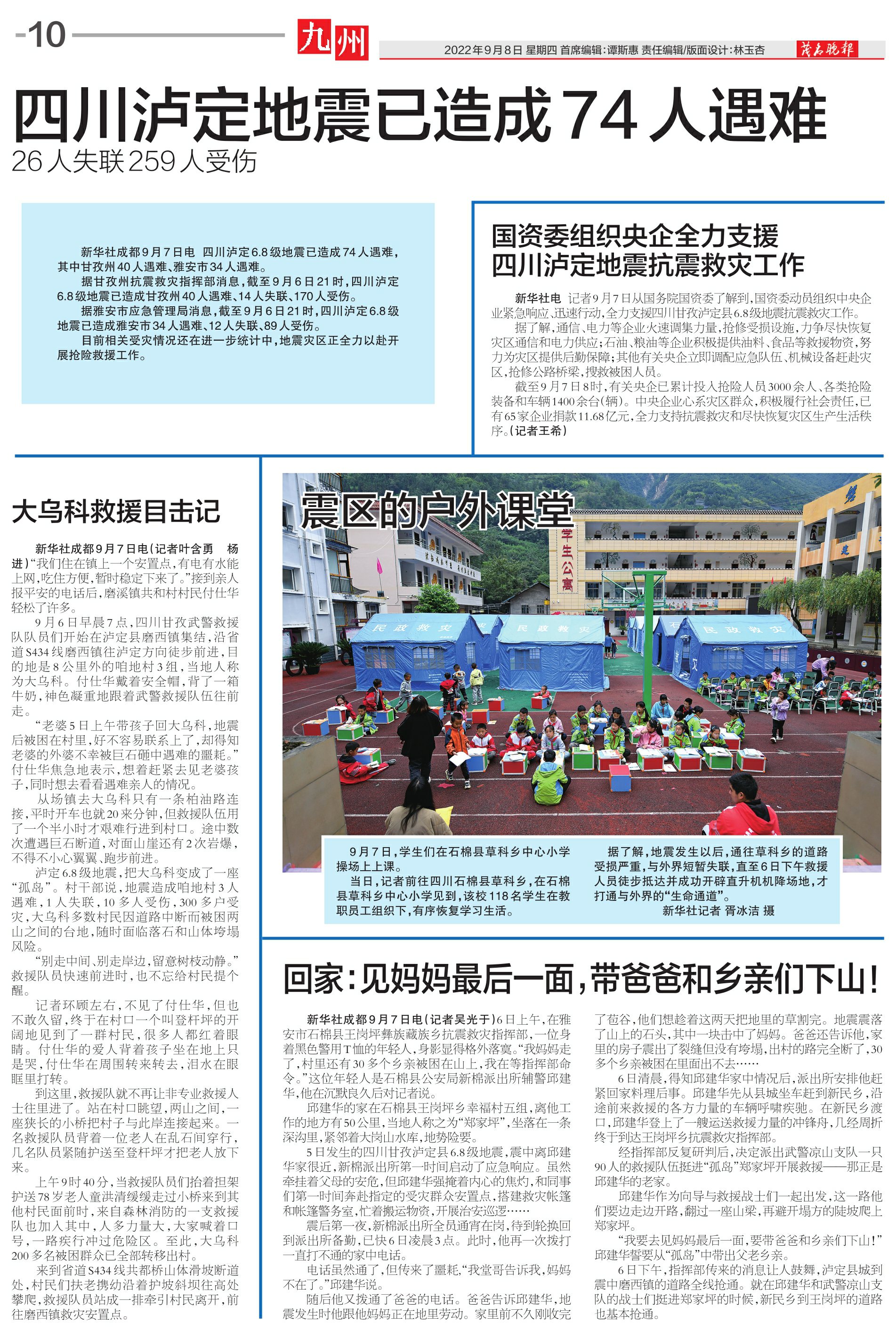 四川泸定地震已造成74人遇难