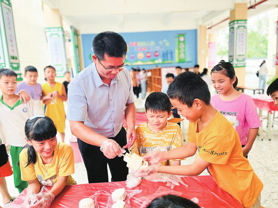 前日,化州市石湾学校组织开展留守儿童做月饼活动。 通讯员林永少摄