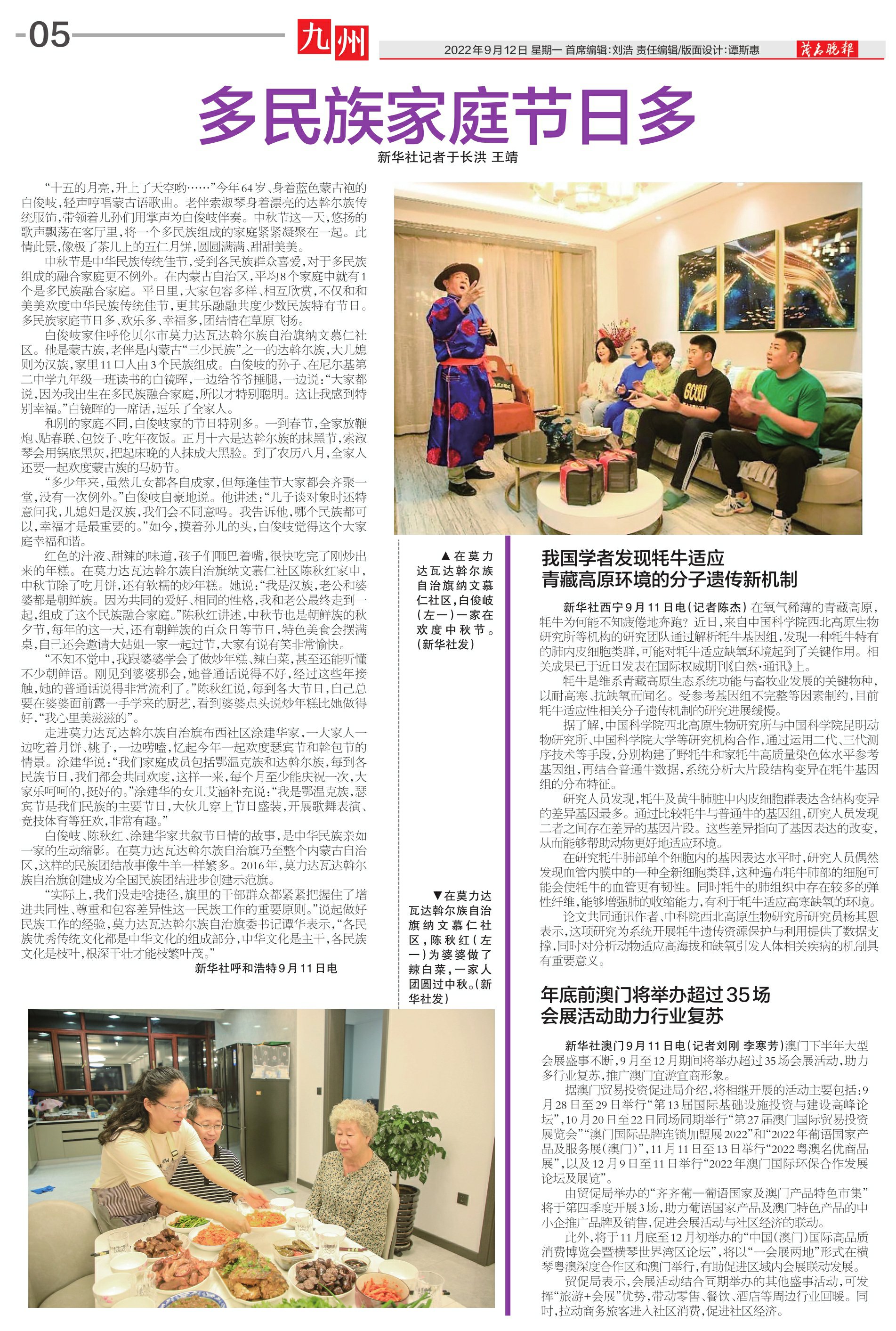 多民族家庭节日多