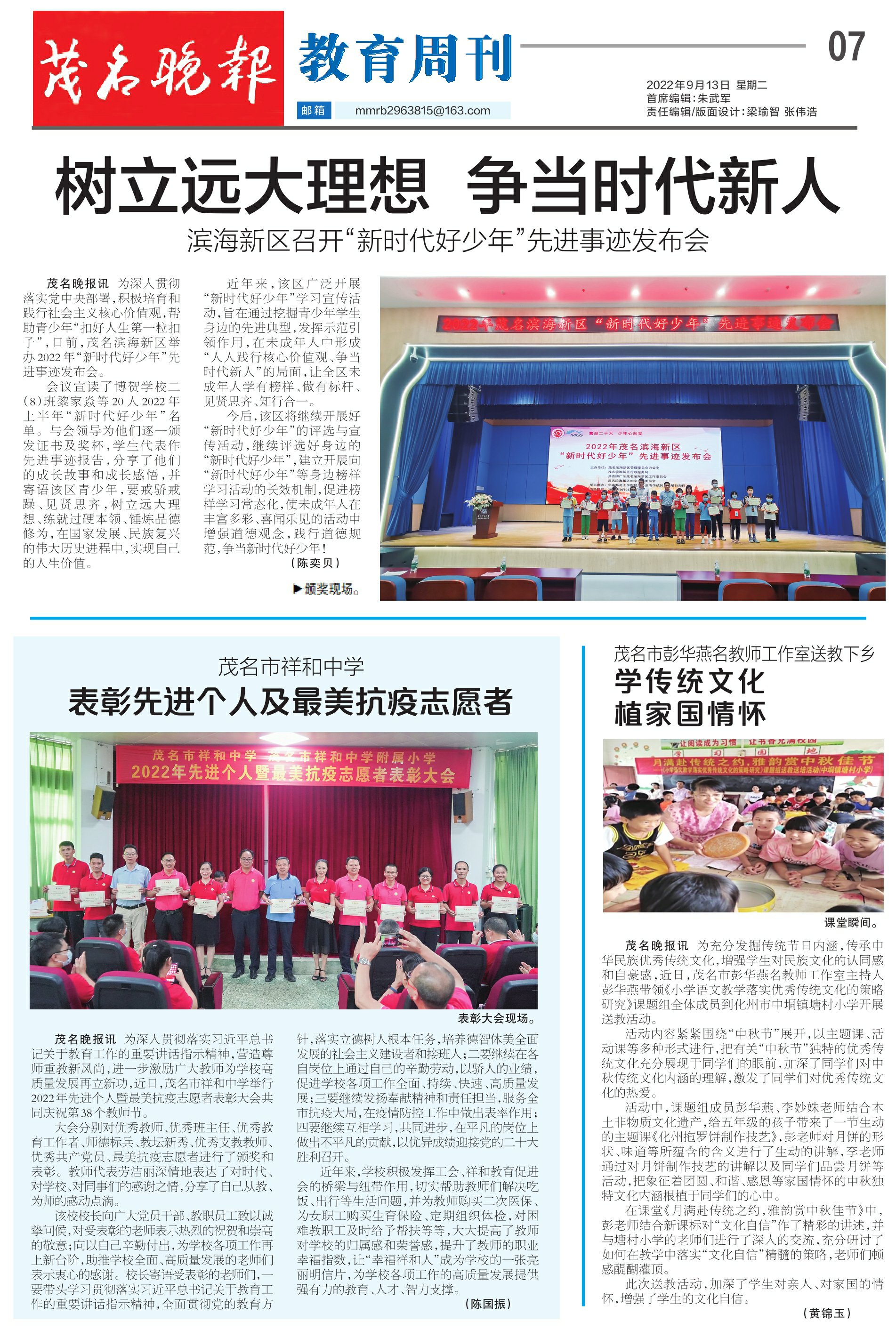 茂名市祥和中学表彰先进个人及最美抗疫志愿者