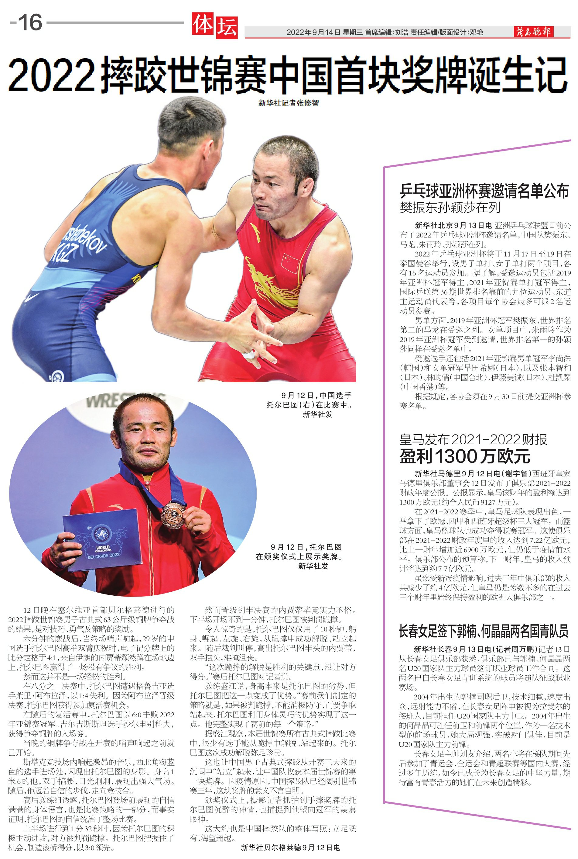 2022摔跤世锦赛中国首块奖牌诞生记