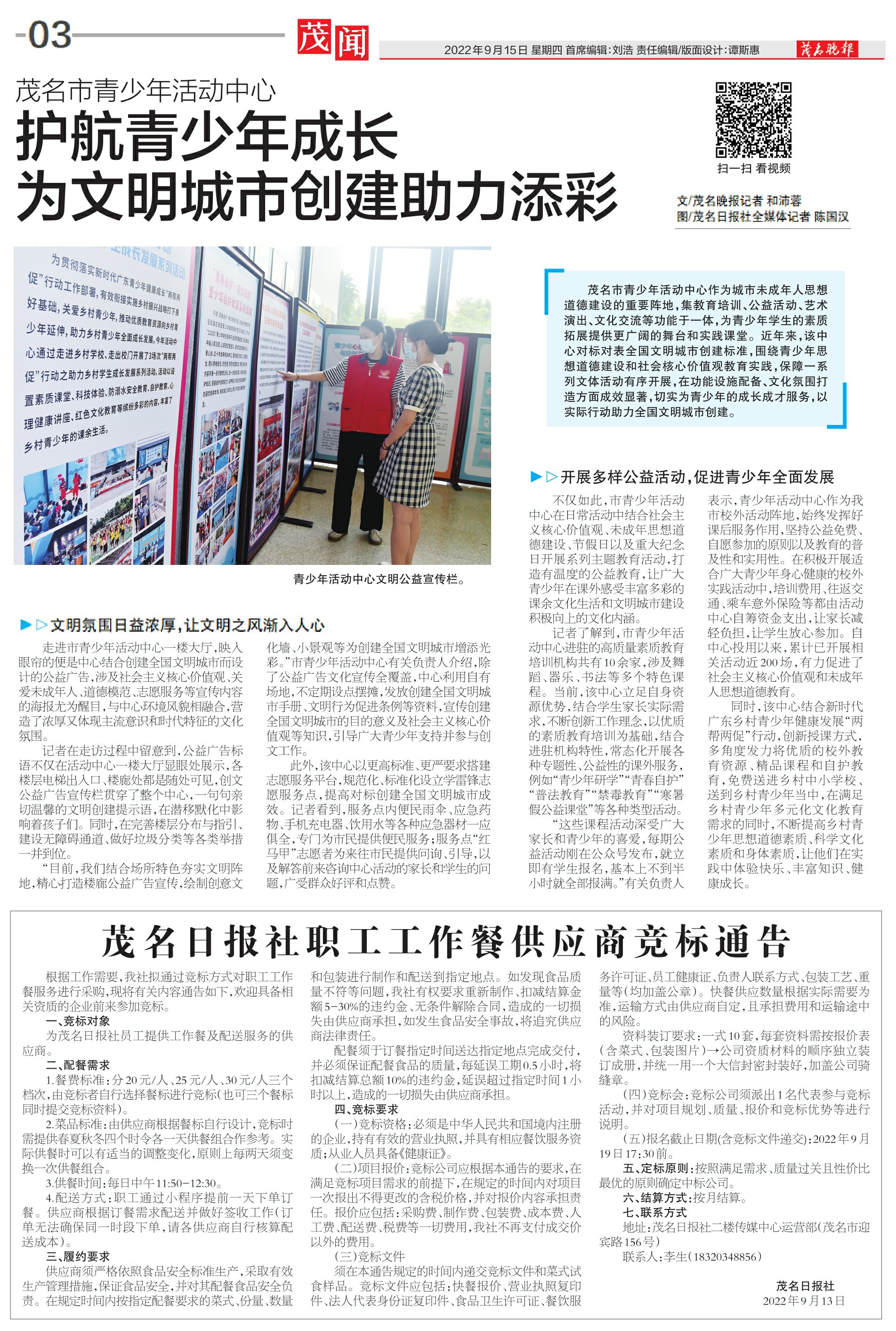 茂名日报社职工工作餐供应商竞标通告