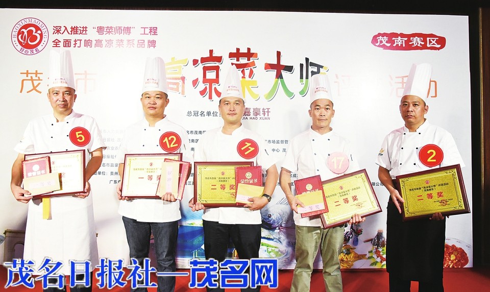 “高凉菜大师”评选茂南赛区一、二等奖选手合影。