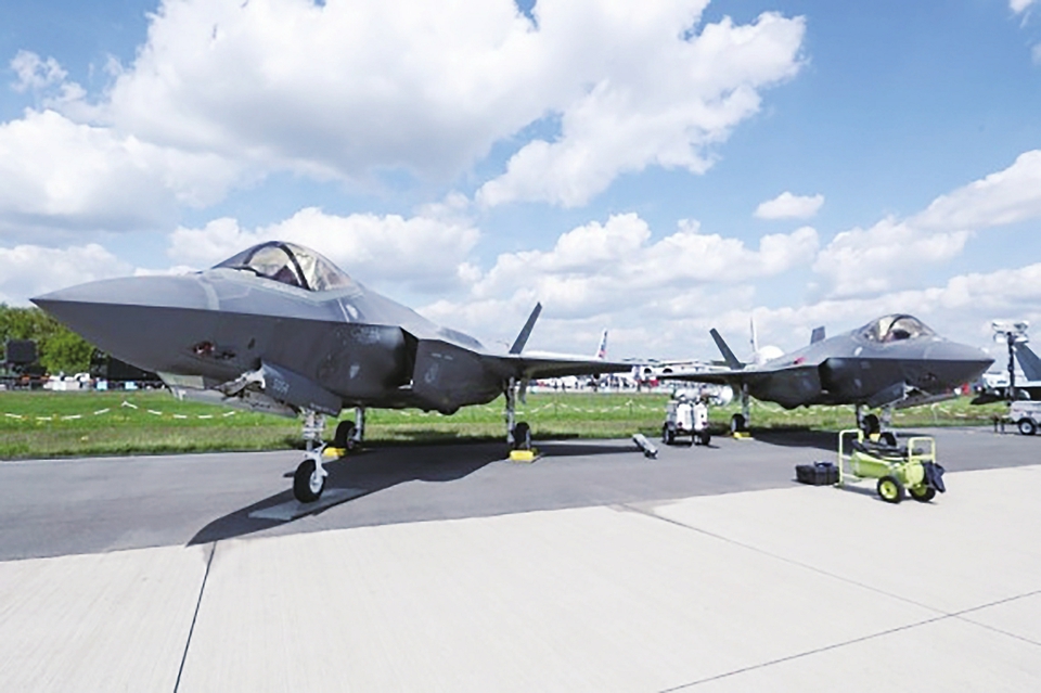 德国柏林国际航空航天展上拍摄的“F-35”型战机。新华社记者单宇琦摄