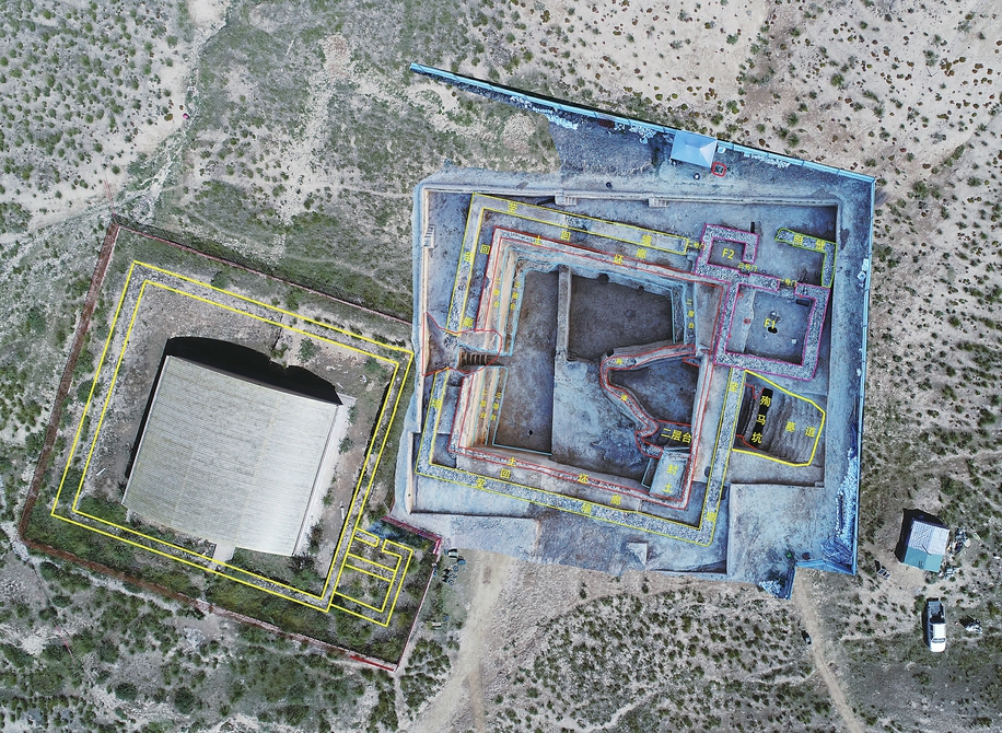 “2022年的工作重点是对2007QM1进行保护性清理发掘。”中国社会科学院考古研究所副研究员韩建华介绍,目前2007QM1清理发掘工作已经完成。据介绍,2007QM1位于2018血渭一号墓西侧,紧挨2018血渭一号墓西茔墙。早年已发掘出茔墙、地上建筑、墓道、甬道、照墙和墓室,但未公布考古资料。为保护展示遗址,经重新发掘,确认该墓墓园形制和规模与2018血渭一号墓墓园相似。