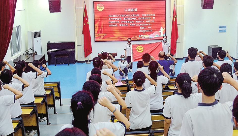 茂名晚报讯记者吴宗泽通讯员张乔君昨日下午,茂名市启源中学在团校教室举行“喜迎二十大、永远跟党走、奋进新征程”2022年秋季新团员入团仪式。