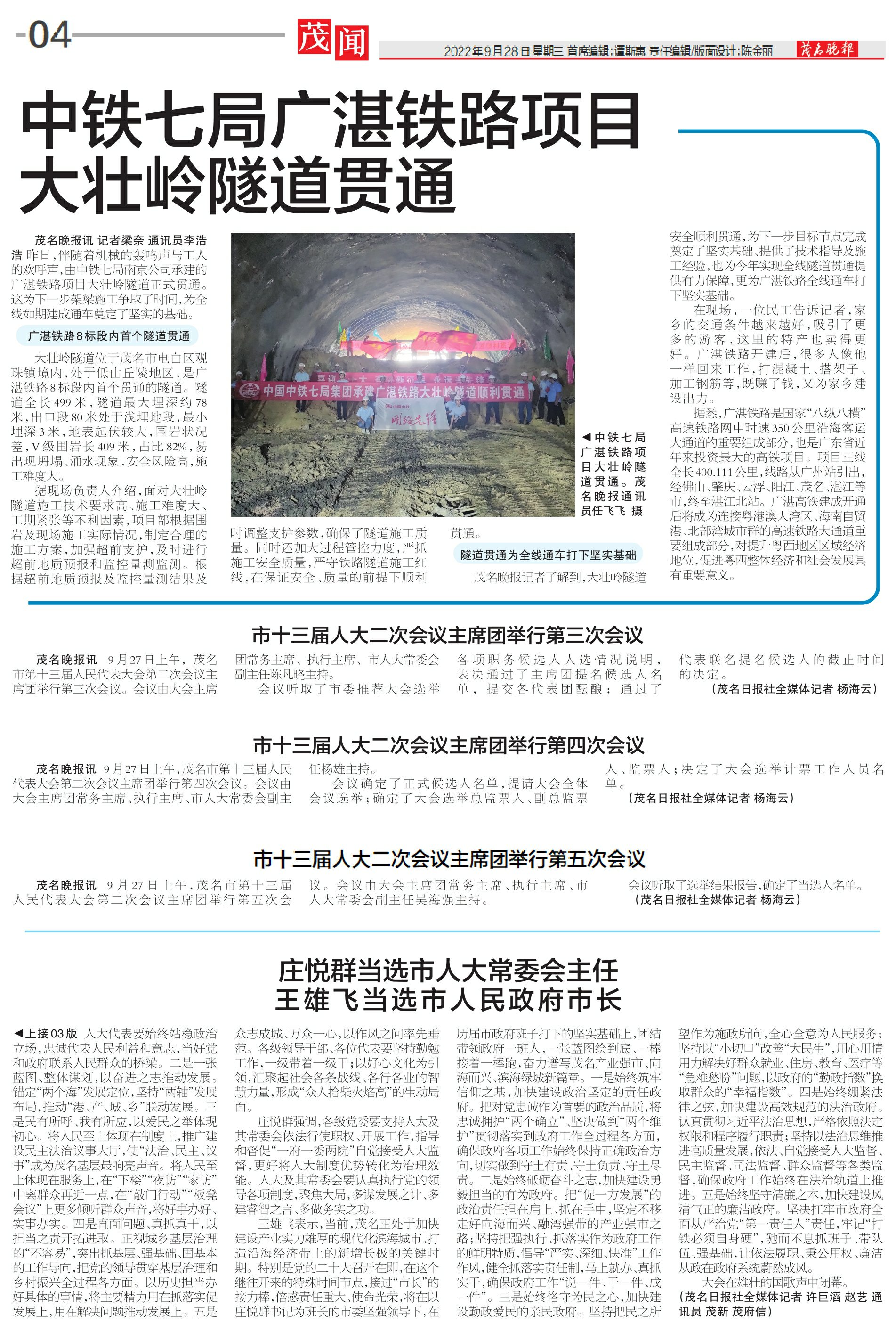 中铁七局广湛铁路项目大壮岭隧道贯通