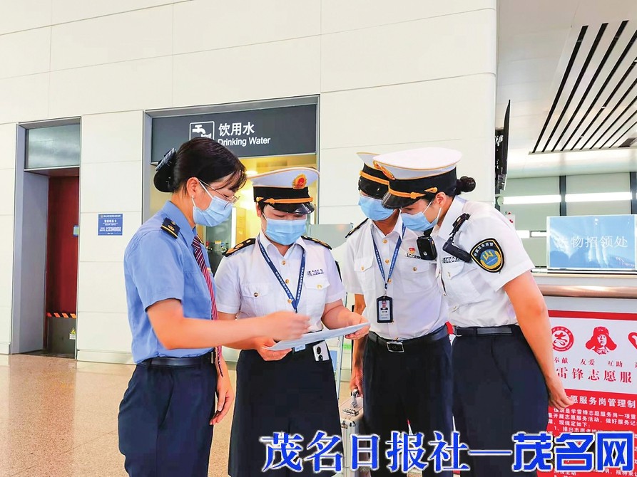 9月29日上午,茂名市卫生监督所在我市各类公共场所开展统一疫情防控检查行动。在茂名站南站房检查现场,卫生监督员重点检查了进出站旅客体温检测和健康码行程码核检、出站旅客“落地检”核酸检测、候车场所清洁、消毒等情况。