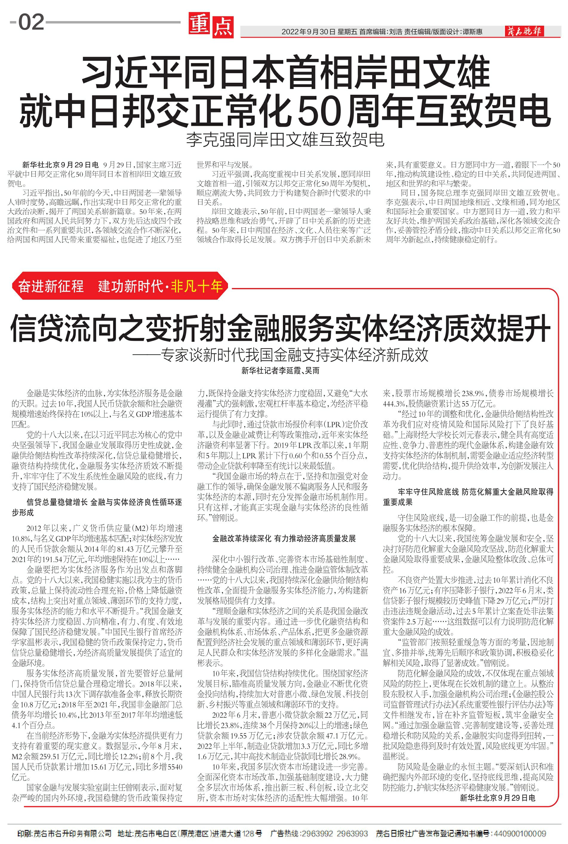 习近平同日本首相岸田文雄就中日邦交正常化50周年互致贺电