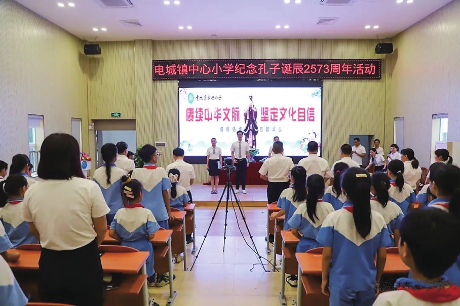 茂名晚报讯记者谭斯惠通讯员梁晓玲9月28日,正逢孔子诞辰纪念日,为缅怀先师,赓续中华文脉,坚定文化自信,电城镇中心小学隆重举行了孔子诞辰日纪念活动。