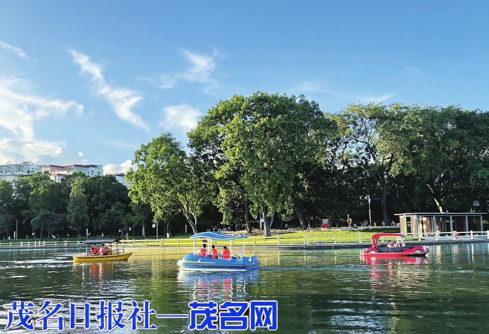10月2日,市民在新湖公园泛舟。茂名日报社全媒体记者李颜东摄