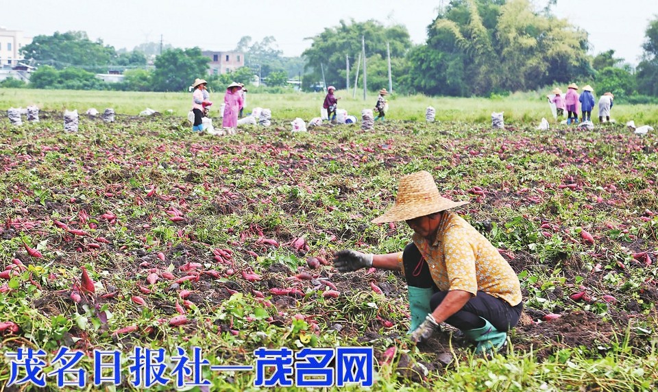 村民在地里分拣红薯。茂名日报社全媒体记者岑稳摄