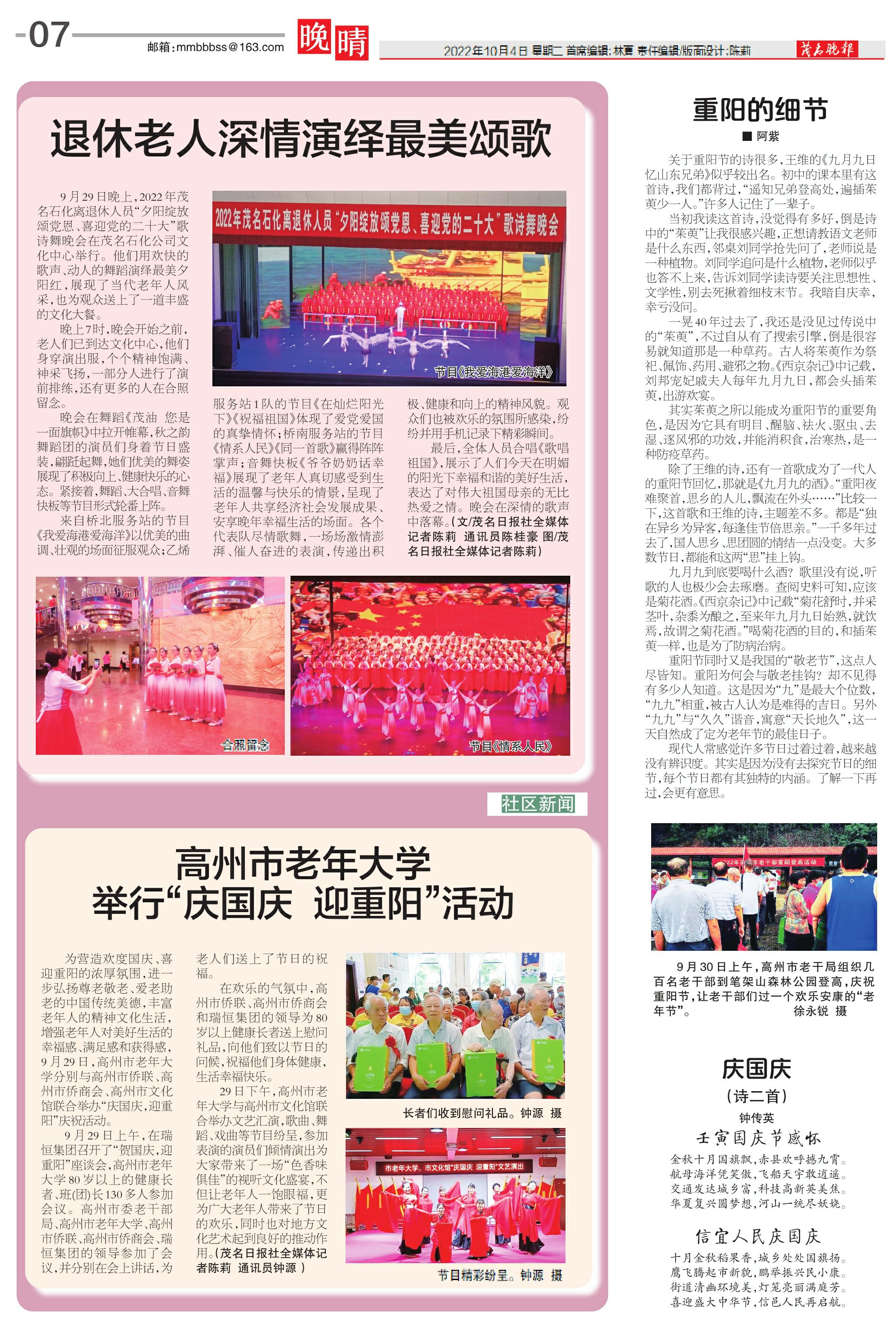 高州市老年大学举行“庆国庆 迎重阳”活动
