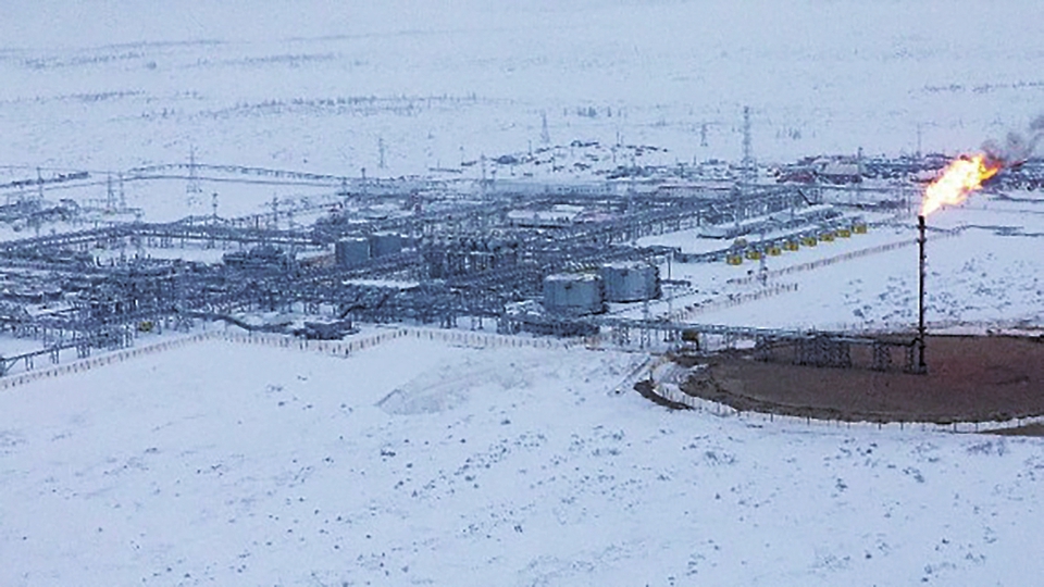2019年2月28日在俄罗斯克拉斯诺亚尔斯克边疆区航拍的万科尔油田苏祖产油区。 新华社记者 白雪骐 摄