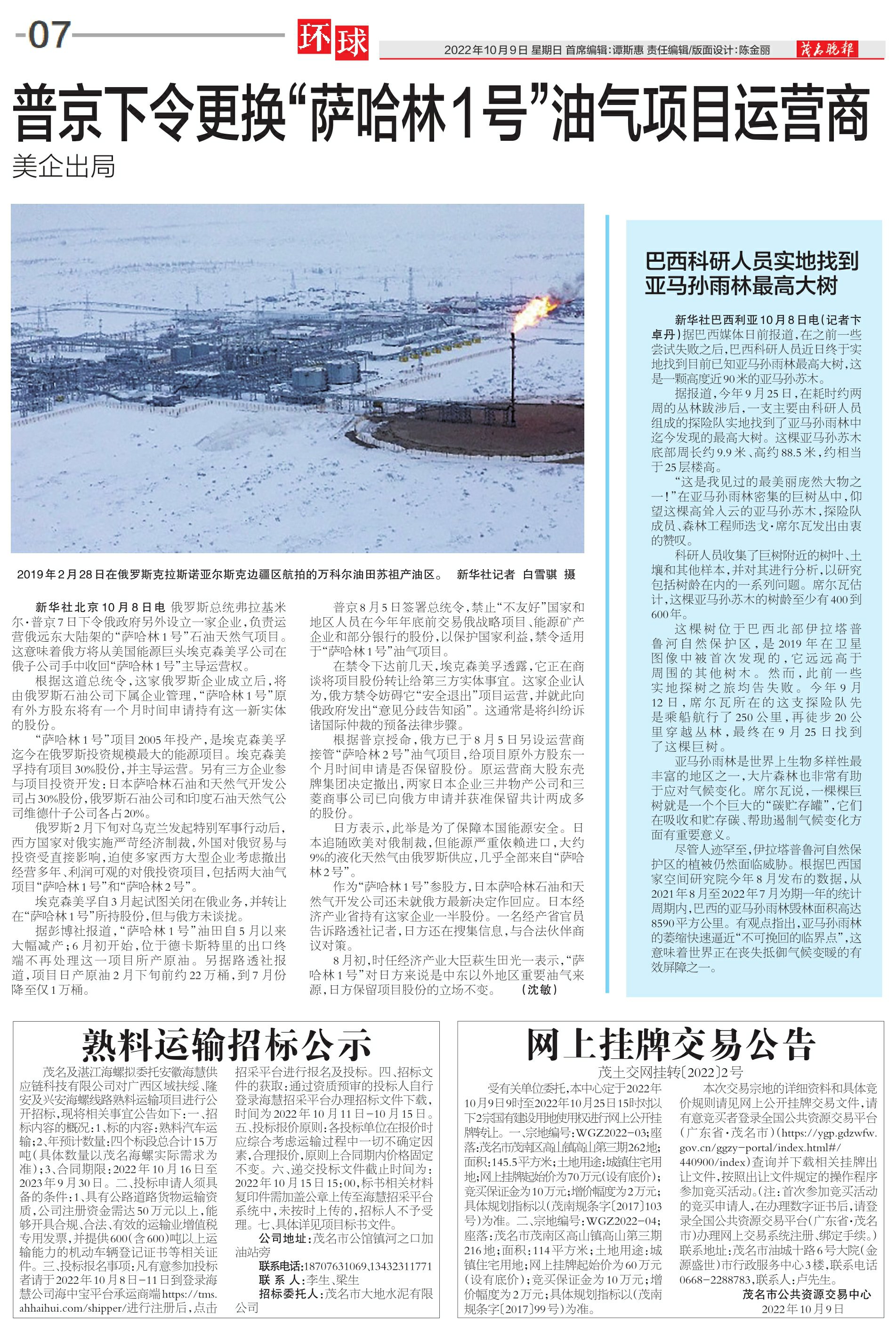 普京下令更换“萨哈林1号”油气项目运营商 美企出局