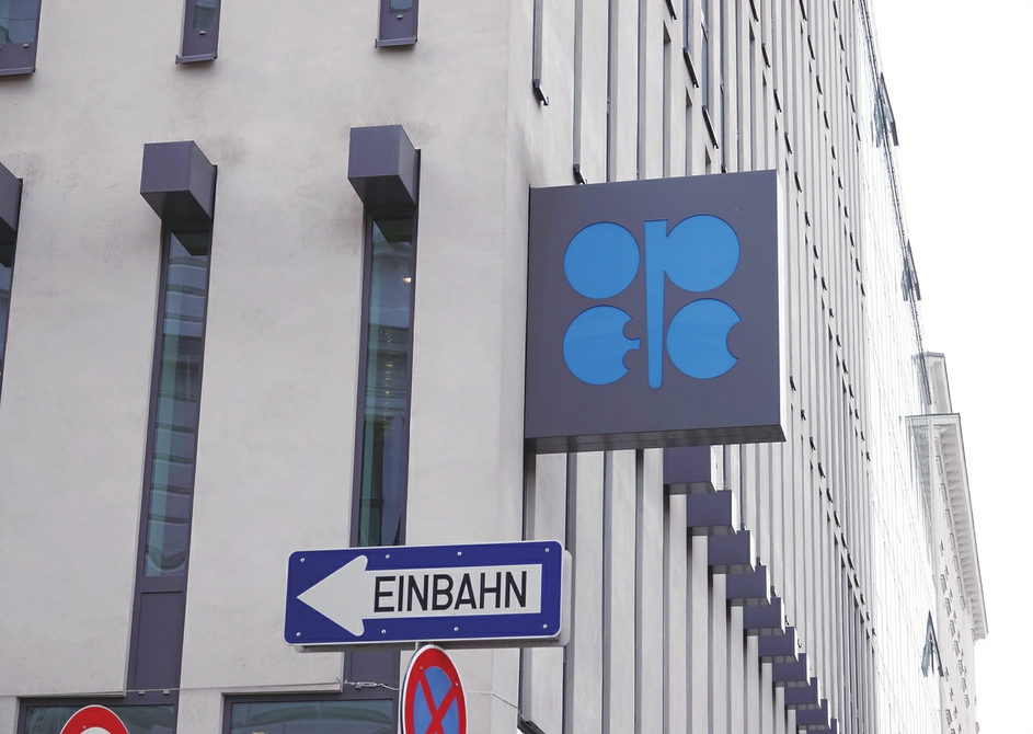 这是10月5日在奥地利首都维也纳拍摄的石油输出国组织(欧佩克)总部标志。欧佩克与非欧佩克产油国当日决定自今年11月起大幅减产。新华社发(王宙摄)