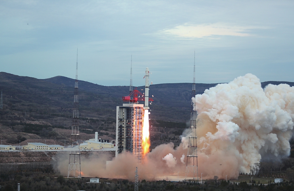 10月13日6时53分,我国在太原卫星发射中心使用长征二号丙运载火箭,成功将5米S-SAR01星发射升空,卫星顺利进入预定轨道,发射任务获得圆满成功。 新华社发(许春雷摄)