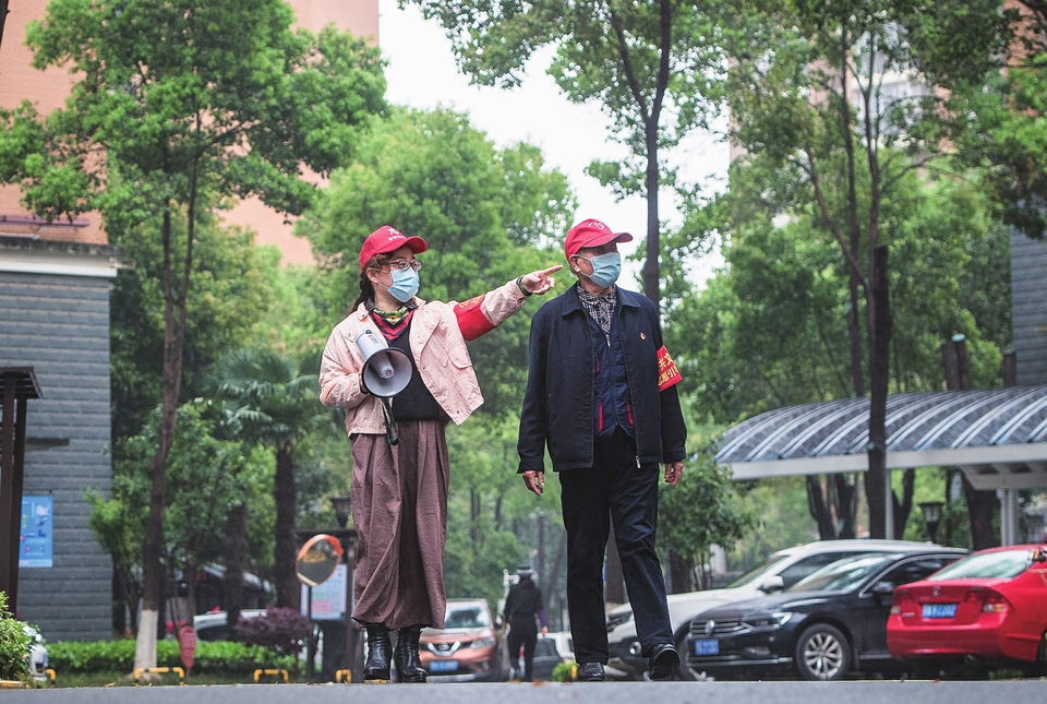 新华社记者刘奕湛、熊琦、李伟武汉东湖新城社区志愿者在社区巡逻(2021年3月31日摄)。新华社记者肖艺九摄