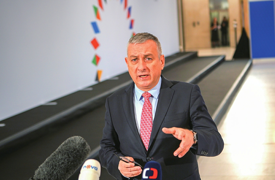 10月12日,在捷克首都布拉格,欧盟轮值主席国捷克工业和贸易部长约瑟夫·西克拉在欧盟能源部长非正式会议前对记者讲话。新华社发(达娜·科什奈洛娃摄)