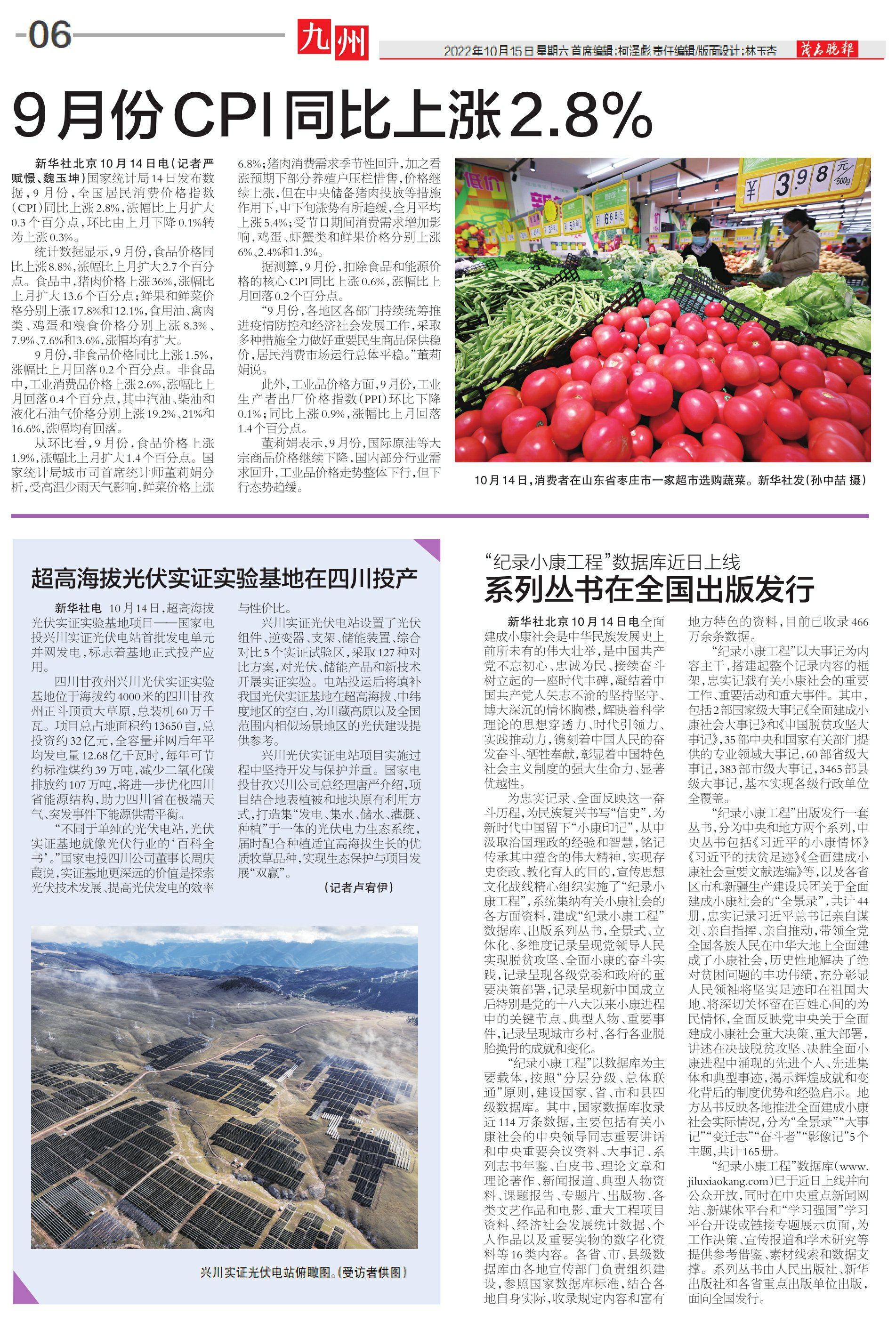 9月份CPI同比上涨2.8%
