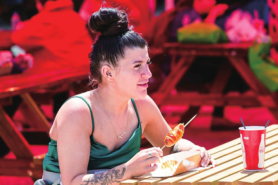 5月7日,在希腊雅典,一名女子品尝食物。新华社发(马里奥斯·罗洛斯摄)