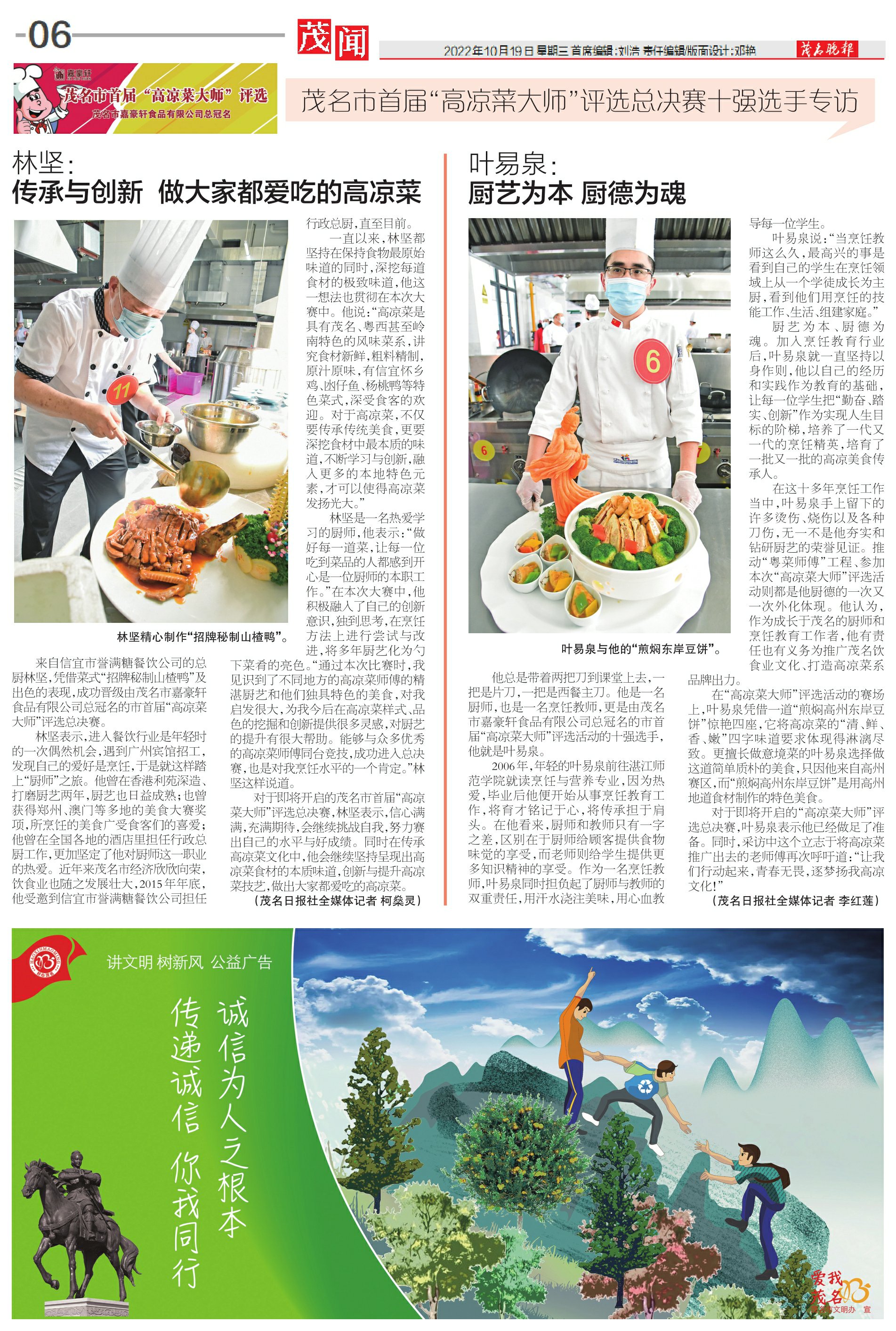 茂名市首届“高凉菜大师”评选总决赛十强选手专访