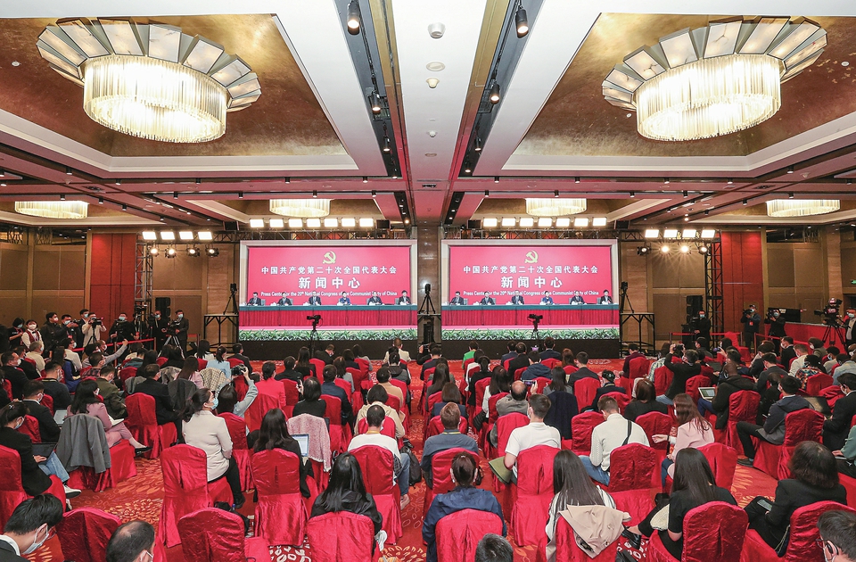 10月19日,中国共产党第二十次全国代表大会新闻中心举行记者招待会。中央政法委副秘书长訚柏,最高人民法院党组副书记、分管日常工作的副院长、一级大法官贺荣,最高人民检察院党组副书记、分管日常工作的副检察长、一级大检察官童建明,公安部党委委员、副部长、国家移民管理局党组书记、局长许甘露,司法部党组成员、副部长左力围绕“坚持以习近平法治思想为指引努力建设更高水平的法治中国”主题与记者交流。 这是分会场。新华社记者殷刚摄