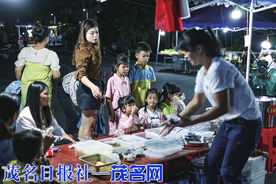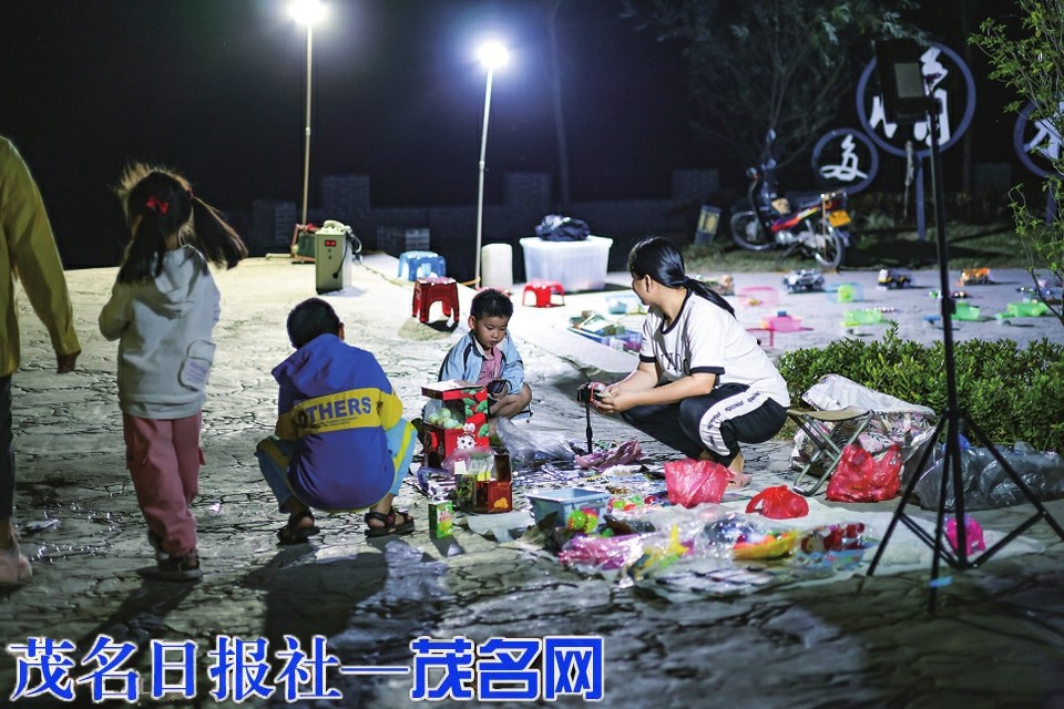 家住附近的张阿姨,除了下雨天,每天都来夜市走一圈。她说:“每天吃完晚饭就出来散散步,这里景色也好,人多热闹,心情更加愉悦。”张阿姨家里以种荔枝为主要经济来源,白天她基本都是到荔枝林走一圈,如今荔枝林的农活不多,晚上便来夜市逛一逛,与亲朋好友边散步边拉家常。