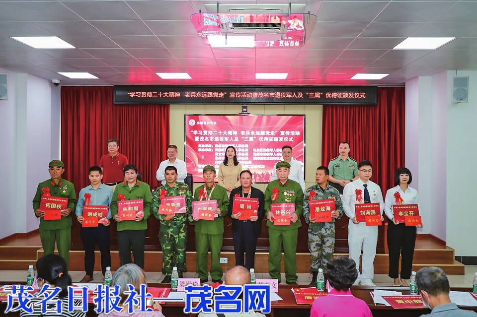 茂名晚报讯记者李茜昨日,市退役军人事务局举行退役军人及其他优抚对象优待证颁发仪式,为28名退役军人和“三属”现场颁发了优抚对象优待证。