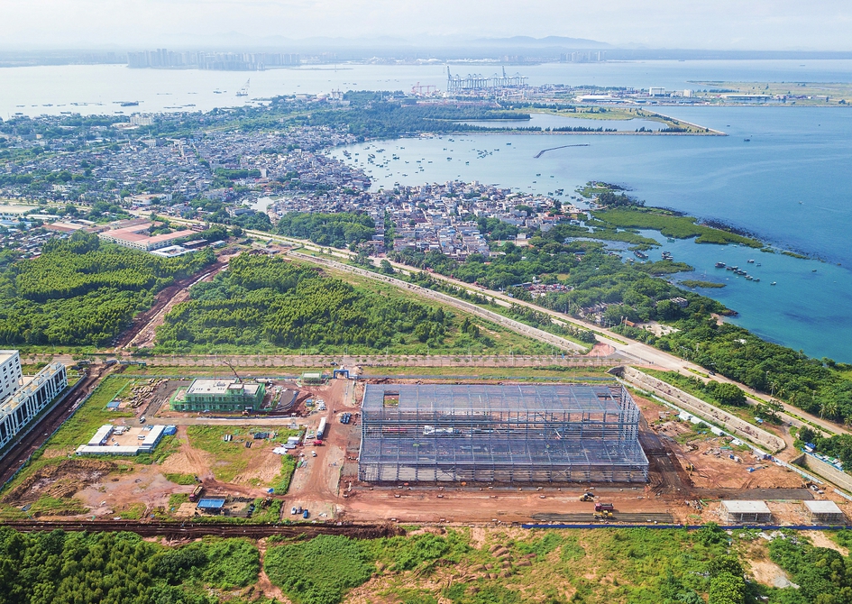 图为10月2日在海南洋浦经济开发区拍摄的建设中的申能电气风电新能源装备产业项目(无人机照片)。新华社记者 蒲晓旭摄