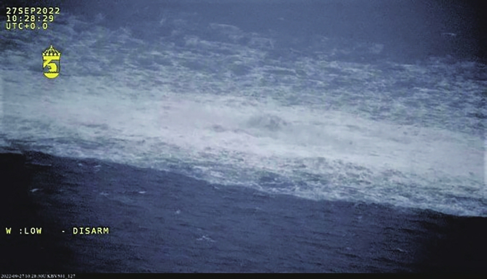 这张瑞典海岸警卫队9月27日发布的航拍照片显示的是一处“北溪”天然气管道泄漏点。新华社发(瑞典海岸警卫队供图)