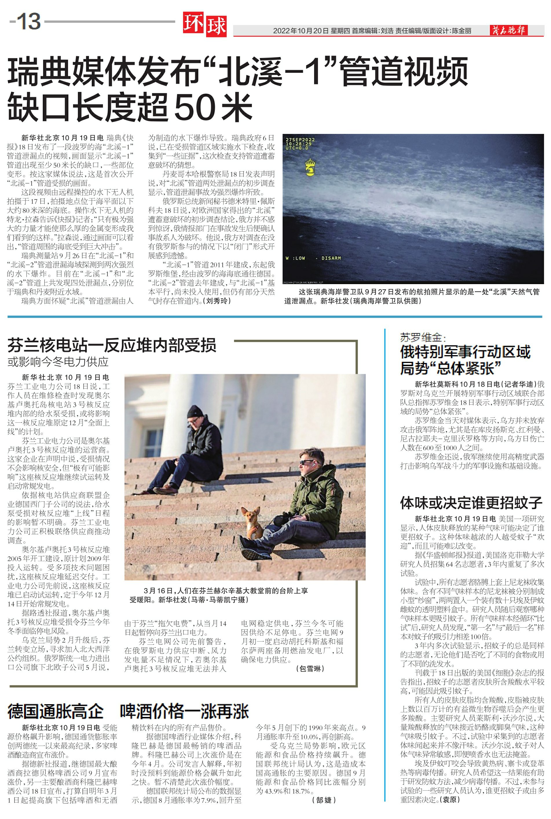 瑞典媒体发布“北溪-1”管道视频缺口长度超50米