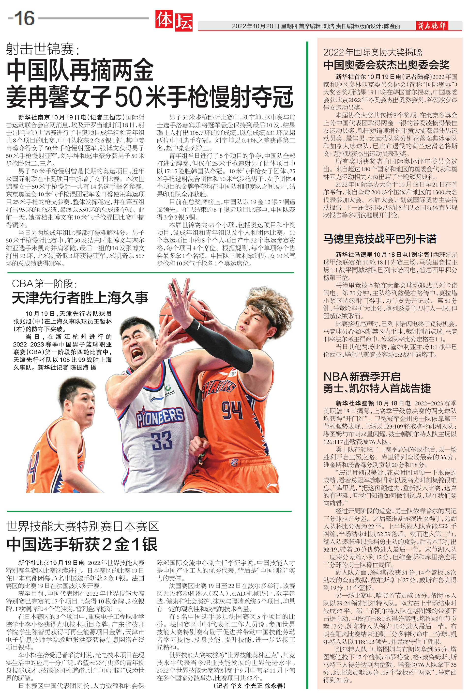射击世锦赛:中国队再摘两金姜冉馨女子50米手枪慢射夺冠