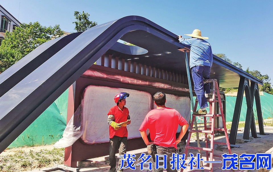 近日,施工人员在复兴大道两旁安装了一批新型候车亭,建成后将为沿线公交乘客候车提供便利。