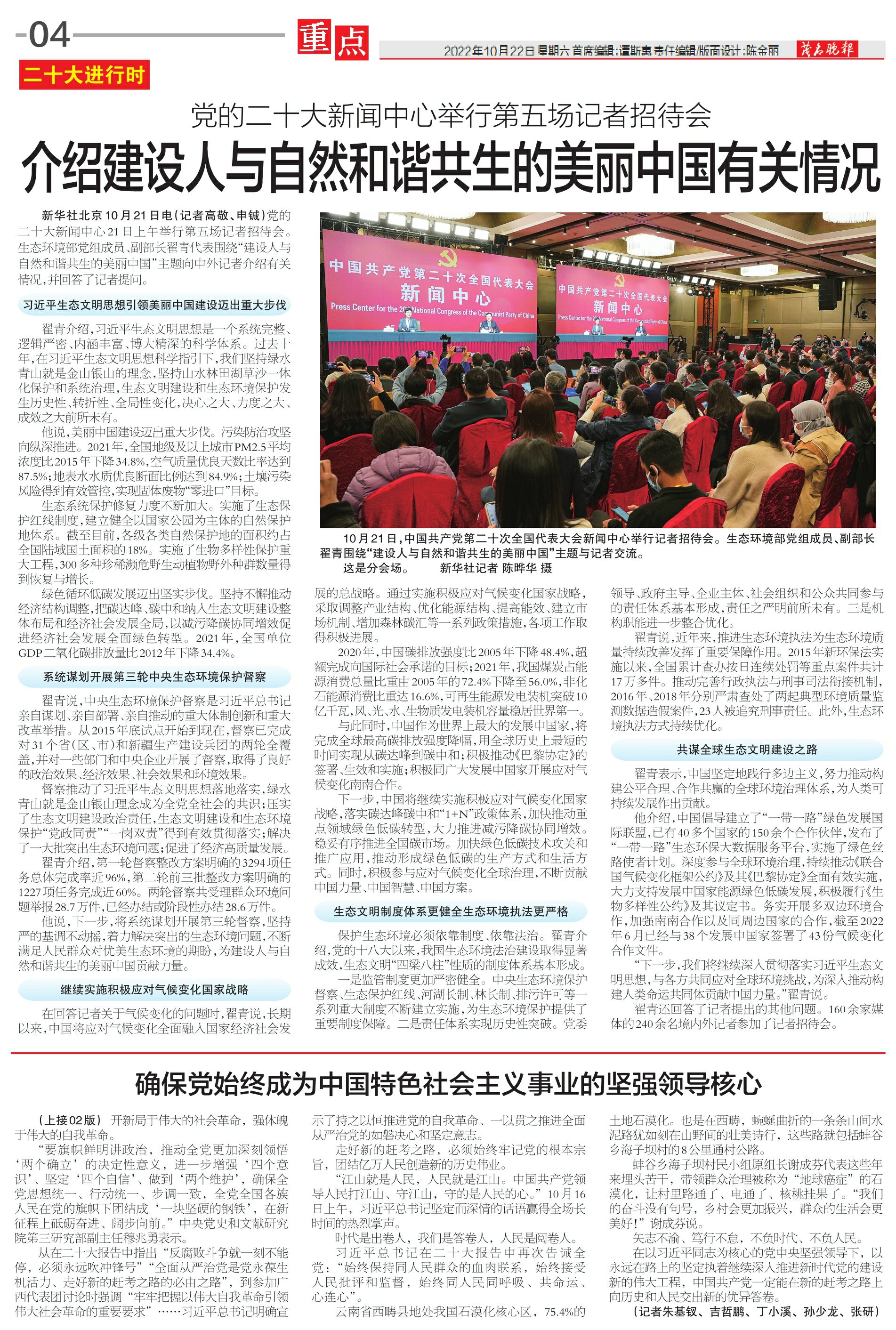 确保党始终成为中国特色社会主义事业的坚强领导核心