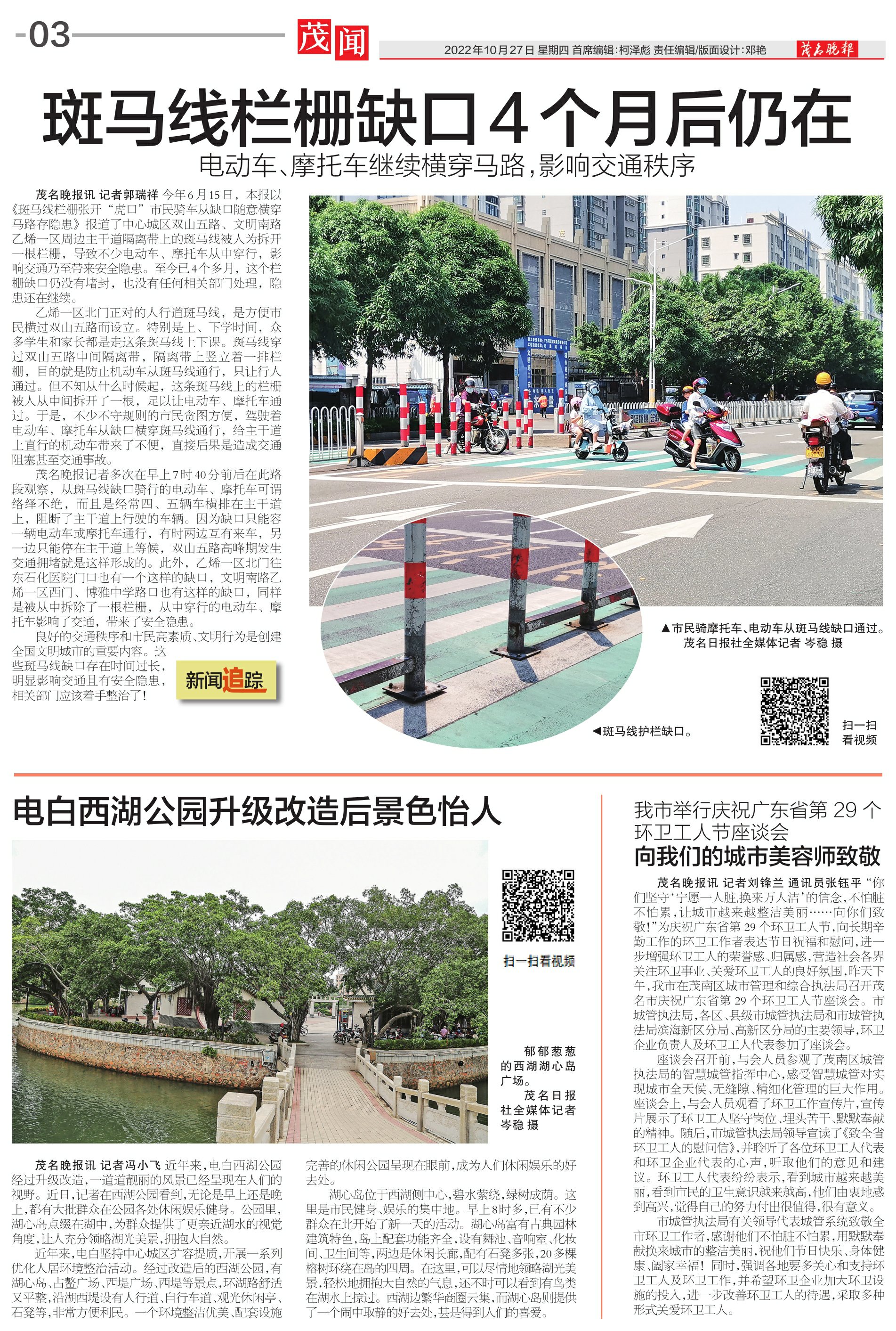 斑马线栏栅缺口4个月后仍在