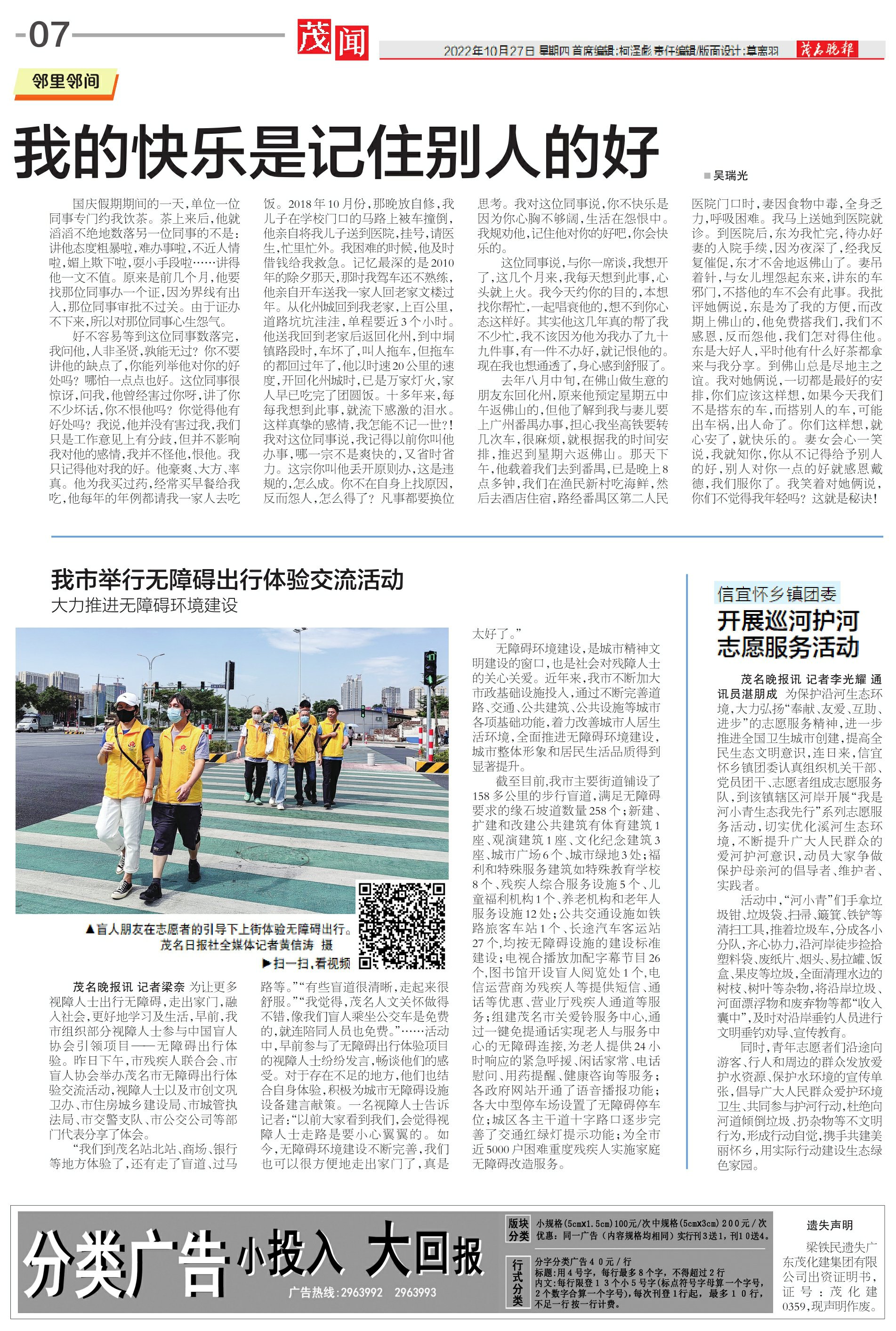 我的快乐是记住别人的好