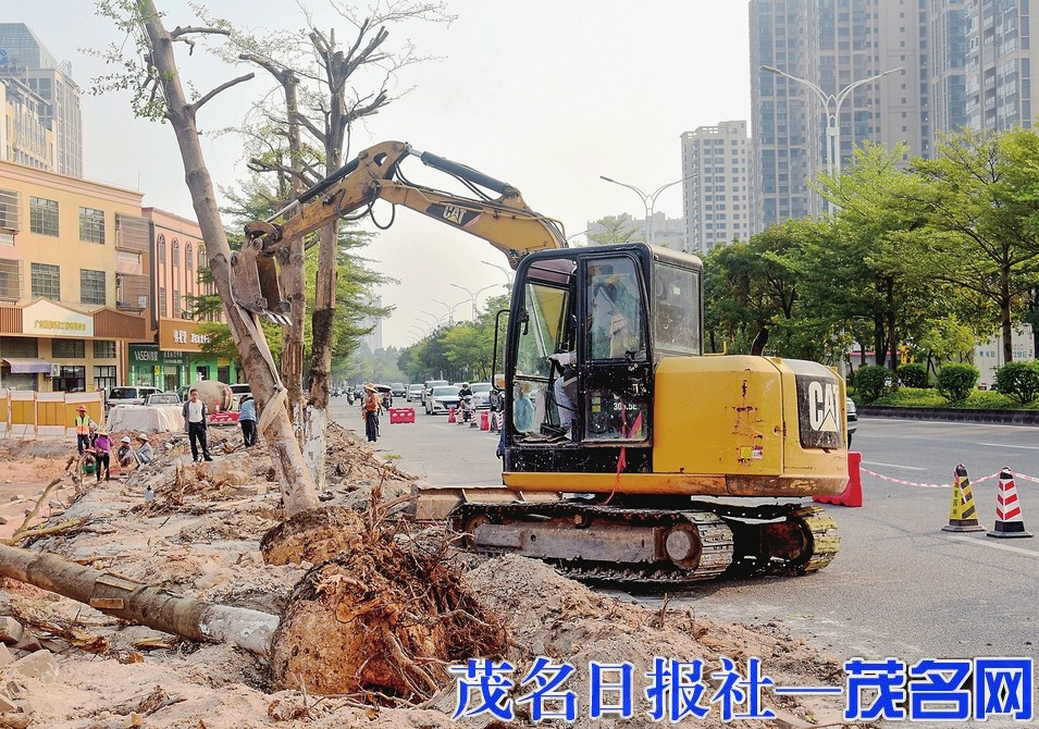 10月29日,记者在市区双山八路与茂名大道交汇处看到,施工人员正在对该处路树进行移植。据施工方介绍,双山八路预计春节前完成整个项目建设。