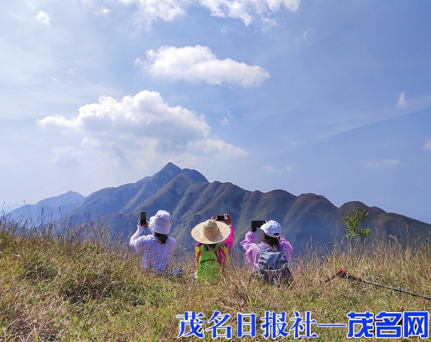 驴友们掏出手机拍摄秋色。茂名晚报记者李光耀摄