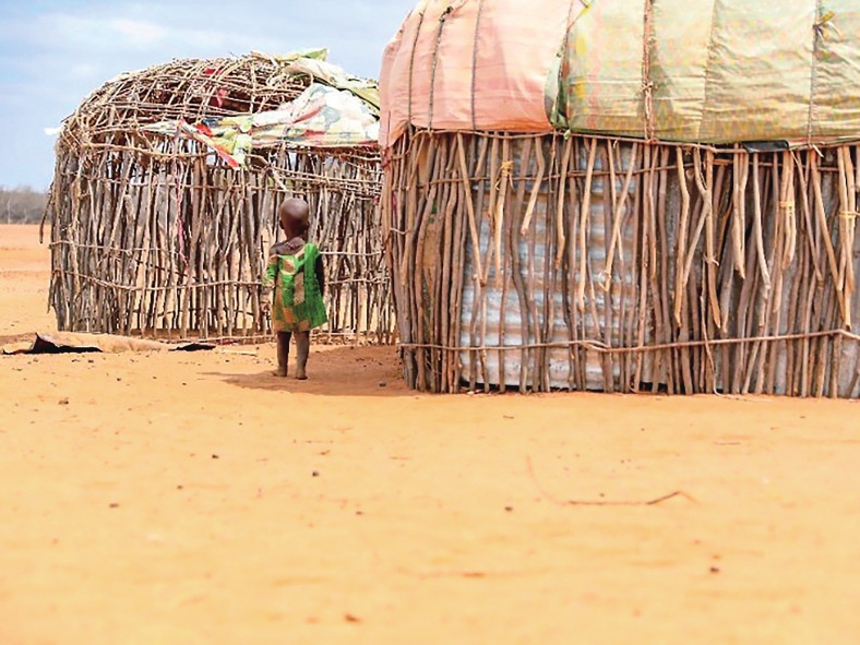 8月26日,一名儿童走在遭受旱灾的肯尼亚马萨比特郡莱萨米斯镇一干旱的村庄内。 新华社记者董江辉摄
