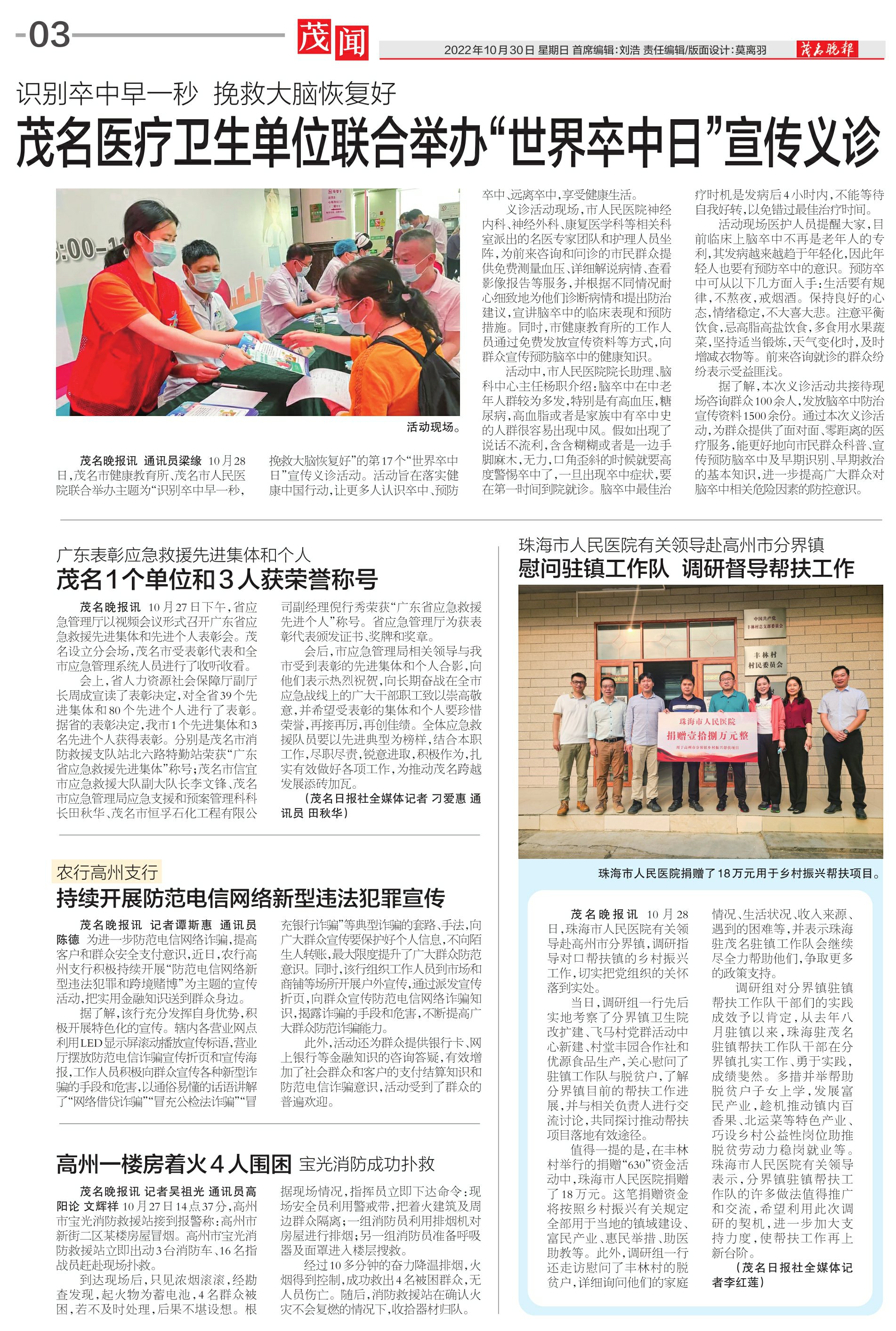 茂名医疗卫生单位联合举办“世界卒中日”宣传义诊